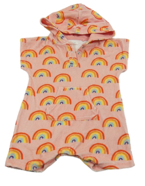 Ružové froté kraťasový overal s duhami a kapucňou Next
