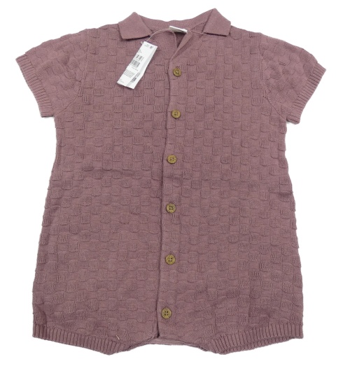 • Nové - hnědofialový vzorovaný pletený kraťasový overal s golierikom Next
