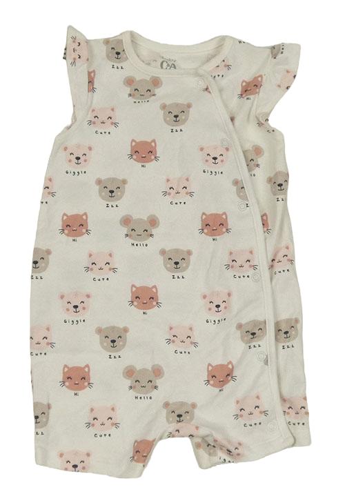 Smotanový bavlnený kraťasový overal so zvířaty C&A