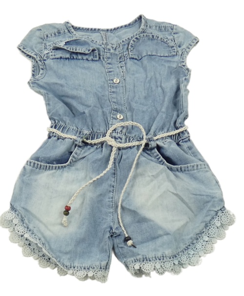 Svetlomodrý ľahký kraťasový overal s čipkou a opaskom