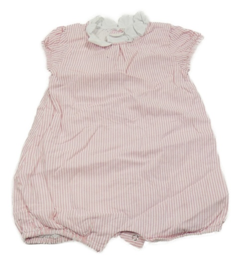 Ružovo-biely pruhovaný kraťasový overal s golierikom