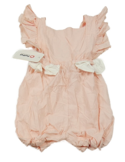 Nové - Svetloružová -biely kraťasový overal s volánikmi a mašľami