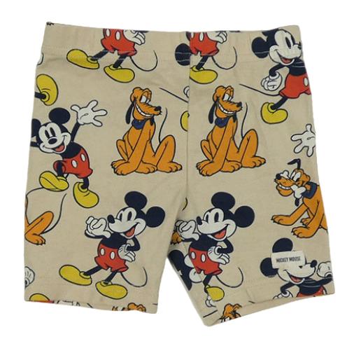 • Béžové elastické kraťasy s Mickeym a Plutem Disney