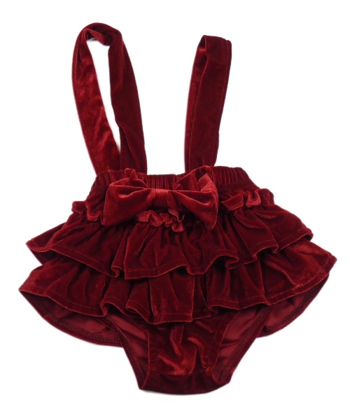 Červené zamatové kraťasy s volánikmi a trakami Shein