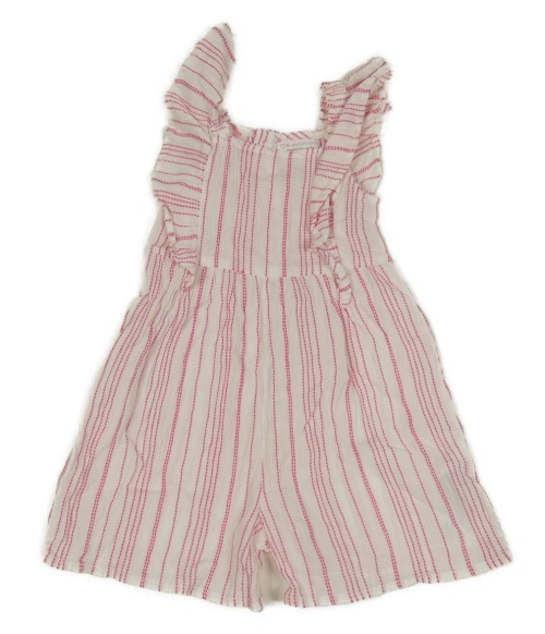 Bielo-ružový pruhovaný mačkaný kraťasový overal s volánikmi PRIMARK