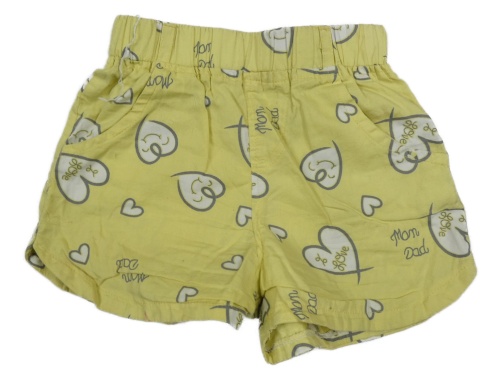 Žlté plátenné kraťasy so srdiečkami a vreckami