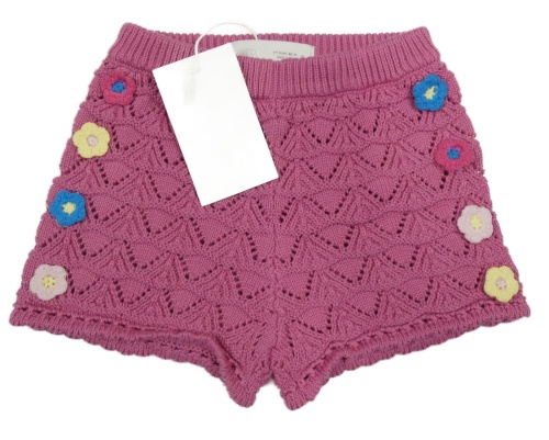 Nové - ružové ažurové pletené kraťasy s 3D kvety ZARA
