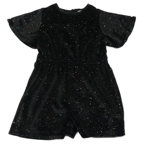 Čierno-farebný zamatový trblietavý kraťasový overal F&F