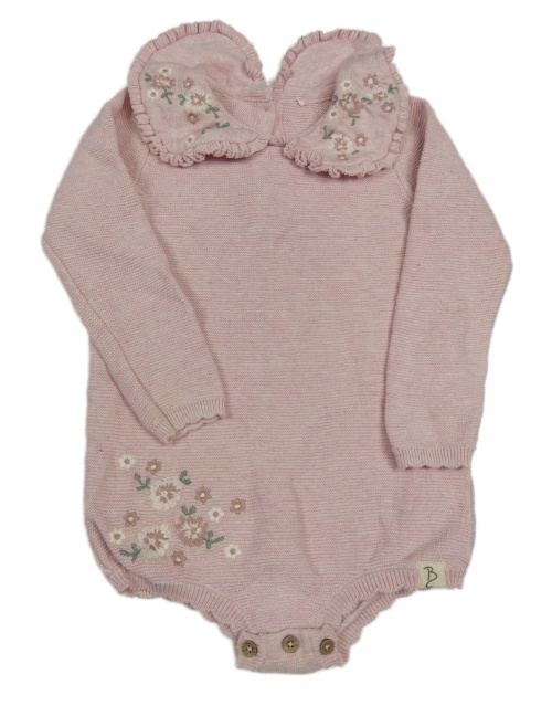 Ružový pletený kraťasový overal s výšivkami květů a golierikom George