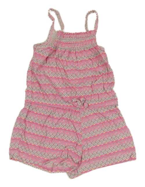 Ružovo-mentolový vzorovaný letný overal so srdiečkami a mašlou YD