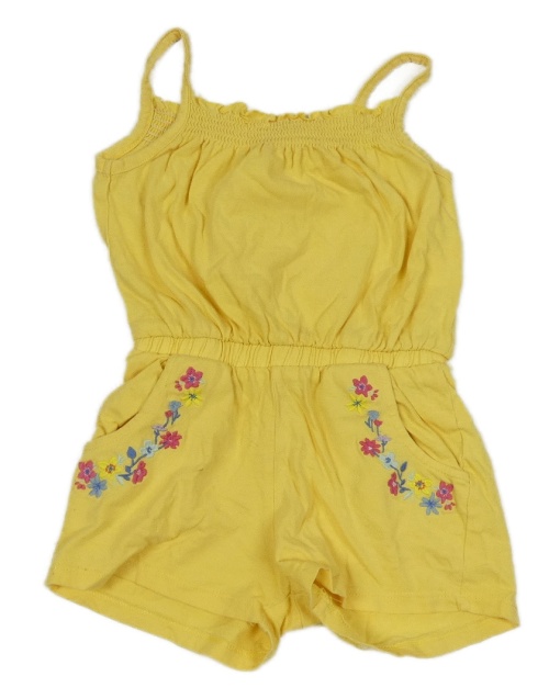Žltý kraťasový overal s výšivkami květů F&F
