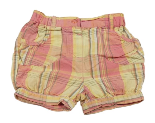 Ružovo-žlté kockované plátenné kraťasy C&A