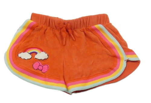 Červené zamatové kraťasy s proužkem a nášivkami Disney