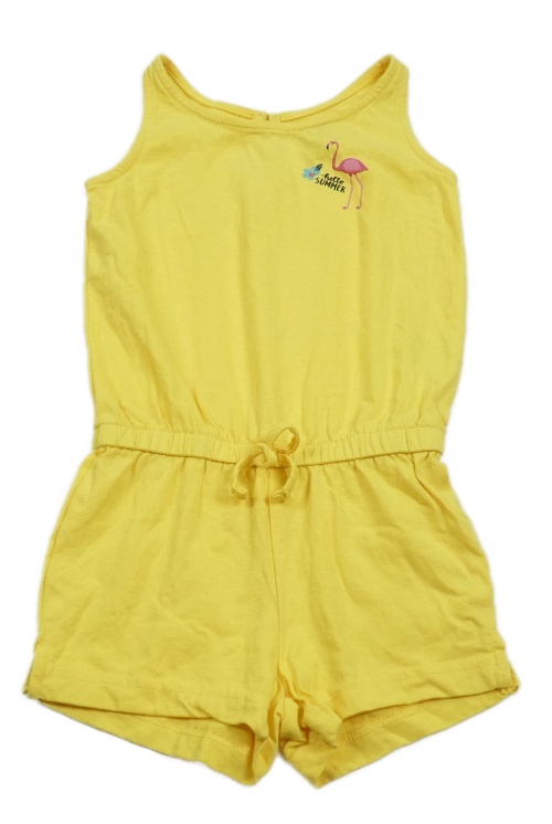 Horčicový bavlnený kraťasový overal s plameňákem Impidimpi