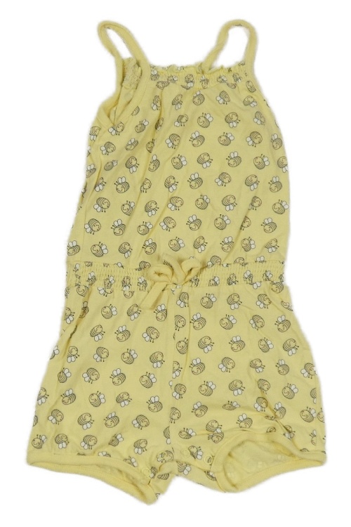 Žltý bavlnený kraťasový overal so včelkami Smile