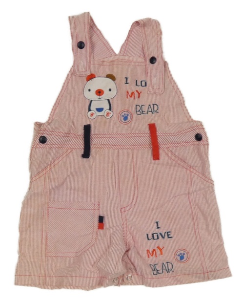 Ružovo-biele pruhované na traké kraťasy s medvedíkom a vyšívanými nápisy