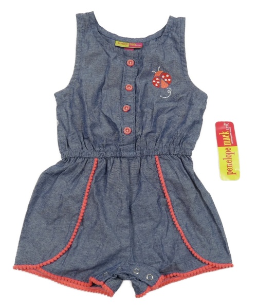 Nové - Modro-ružový kraťasový overal s lienkou PenelopeMack