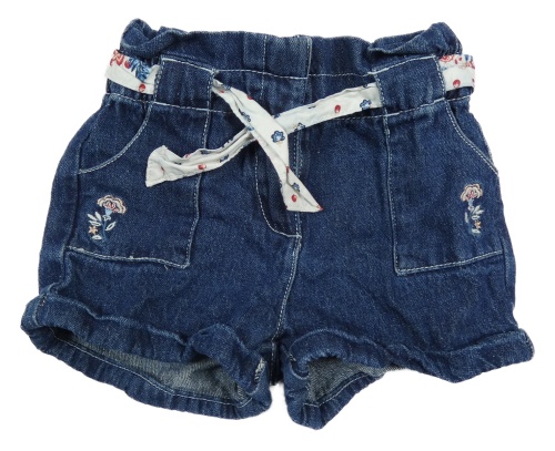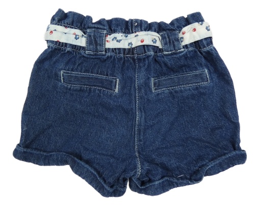 Tmavomodré rifľové kraťasy s kvetmi a opaskom