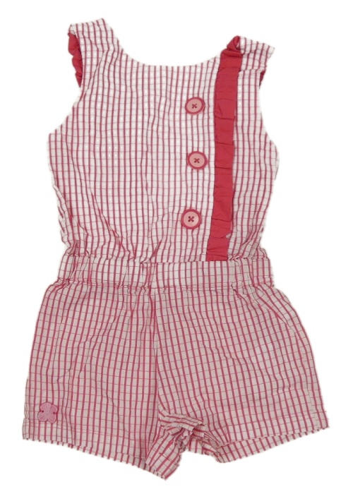 Bielo-ružový kockovaný kraťasový overal s gombíkmi