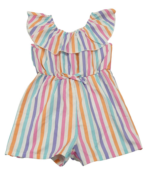 Bielo-farebný pruhovaný kraťasový overal s volánem PatPat