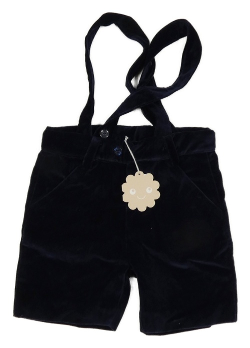 Nové - tmavomodré sametovo/manšestrové podšité kraťasy s trakami Patachou