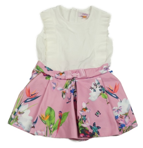 Bielo-ružový kraťasový overal s kvietkami a vtáčky a motýlikmi a volán. TED BAKER
