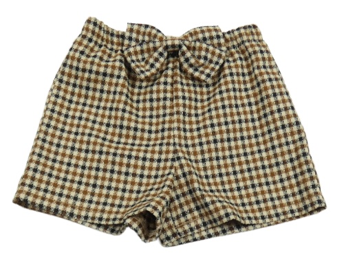 Hnedo-béžové kockované kraťasy s mašlou