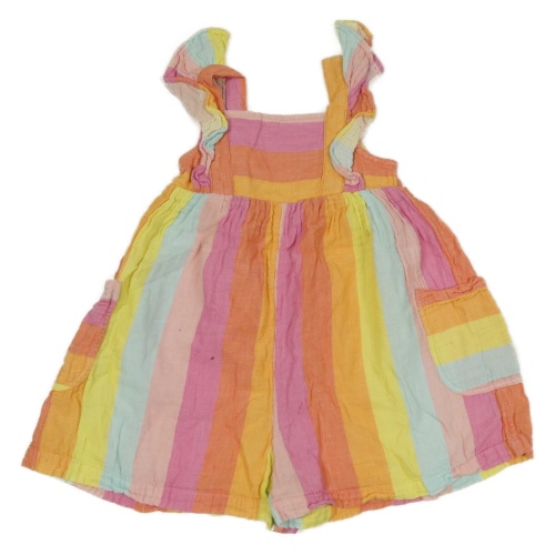 Pruhovaný cargo kraťasový overal s volánikmi Nutmeg
