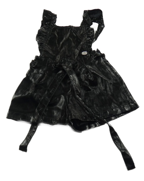 Čierne koženkové na traké kraťasy s volánikmi a opaskom