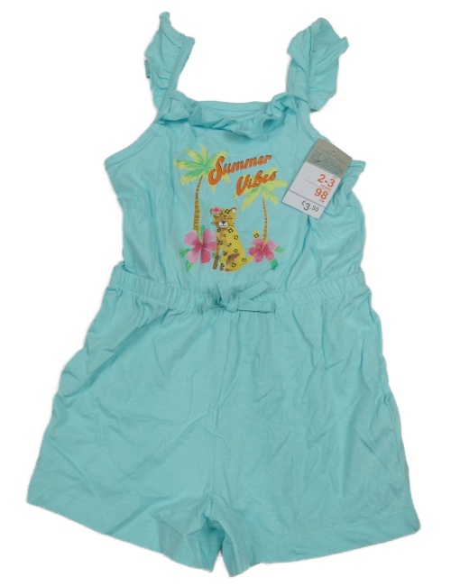 Nové - belasý letný overal so šelmou a palmami a volánikmi PRIMARK