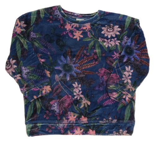 Tmavomodrá plyšová mikina s kvietkami Next
