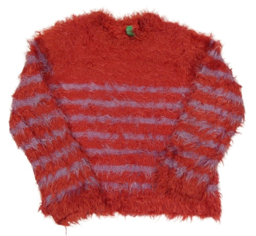 Červeno-fialový pruhovaný chlpatý sveter Benetton