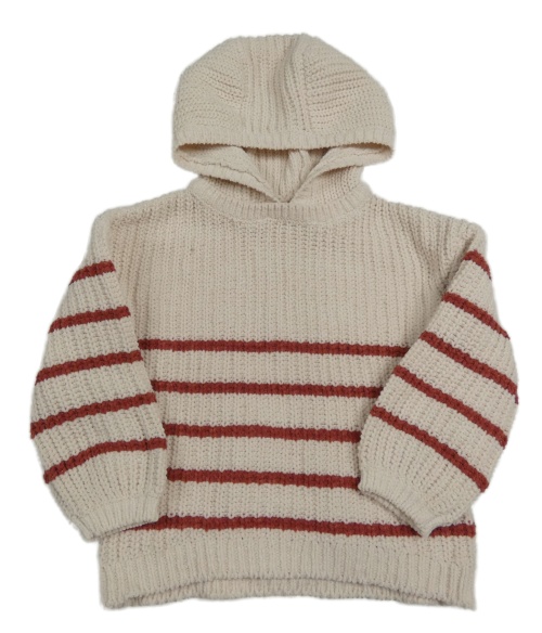 Smotanový pletený sveter s ružovymi pruhmi a kapucňou F&F