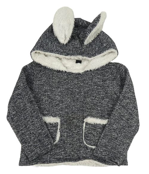 Tmavomodro-biela melírovaná pletená zateplená mikina s kapucňou s uškami hy five