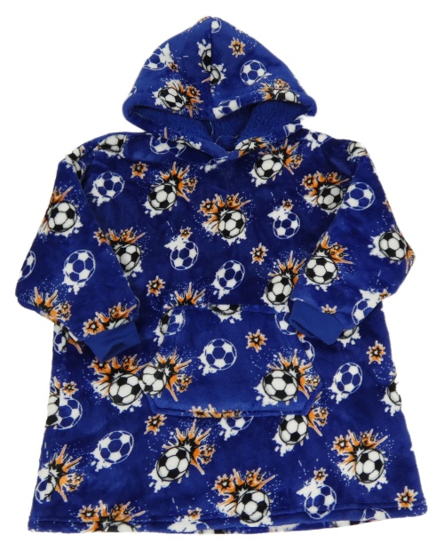 Modrá plyšová zateplená domáceá oversize mikina s loptami a kapucňou