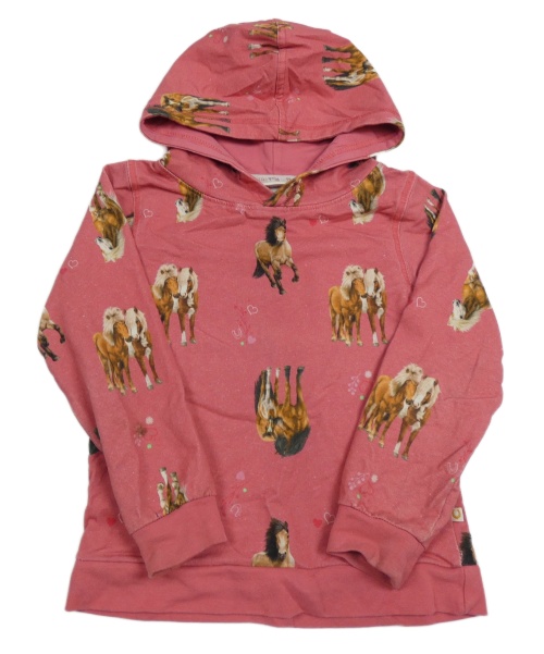 Jahodová melírovaná mikina s koníky a srdiečkami a kapucňou