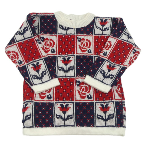 Tmavomodro-červený kockovaný vzorovaný sveter
