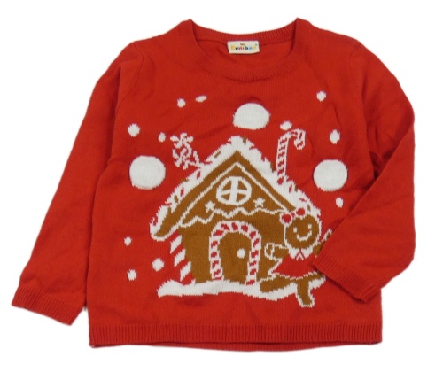 Červený sveter s perníkovou chaloupkou Kuniboo