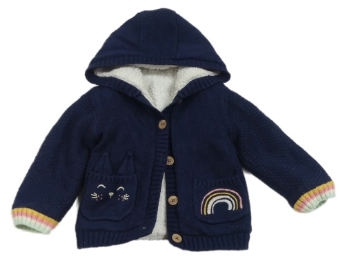 Tmavomodrý zateplený prepínaci sveter s dúhou a kapucňou Nutmeg
