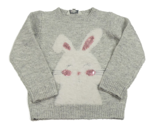 Sivý melírovaný sveter s králikom s flitrami E-Vie