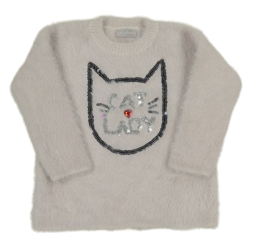 Smotanový chlpatý sveter s kočičkou z flitrů Matalan