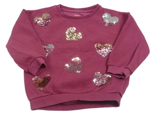 Vínová mikina so srdíčky z překlápěcích flitrů F&F