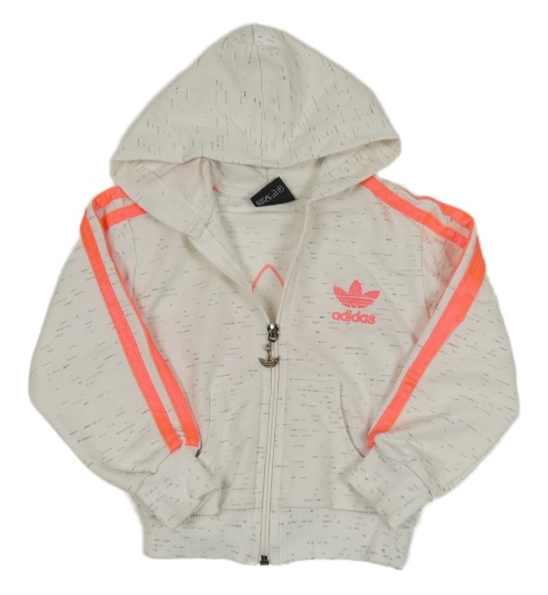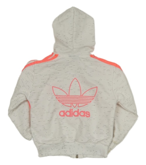 Bielo-neónově ružová melírovaná prepínaci mikina s pruhmi a kapucí Adidas