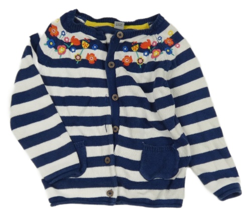 Tmavomodro-biely pruhovaný prepínaci sveter s výšivkami květů Tu