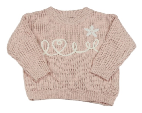 Svetloružový rebrovaný pletený oversize sveter s nápisom a květem SHEIN