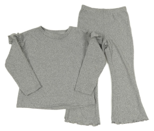 2 set - Sivé melírované úpletové tričko s volánky + flare úpletové nohavice Matalan