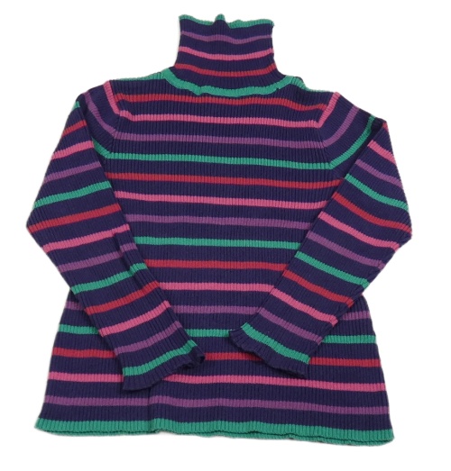 Fialovo-farebný pruhovaný rebrovaný sveter s rolákom