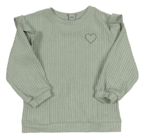 Zelenkavá úpletová rebrovaná mikina so srdiečkom Tu