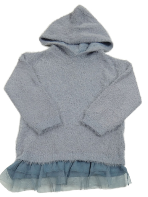 Světlemodrošedý chlpatý sveter s tylem a kapucňou Tu