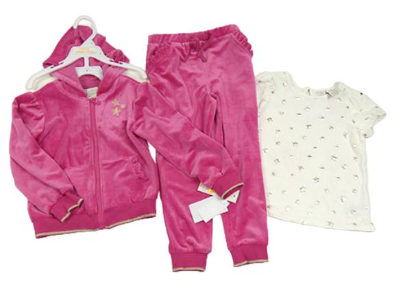 Nové - 3set - Fuchsiová plyšová prepínaci mikina s hviezdami a kapucí + tepláky + biele tričko s hviezdami